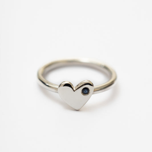Anillo Corazón plata + zafiro