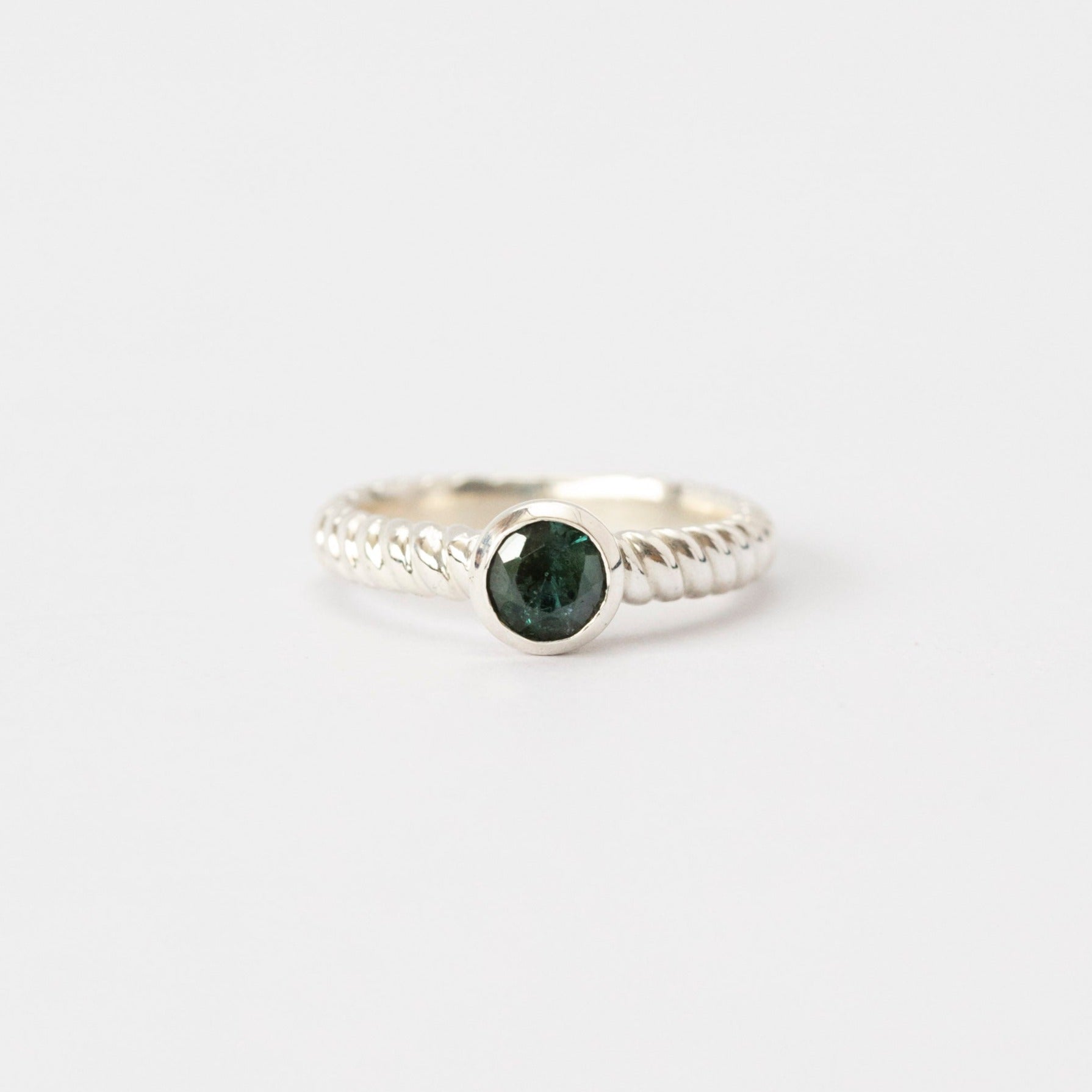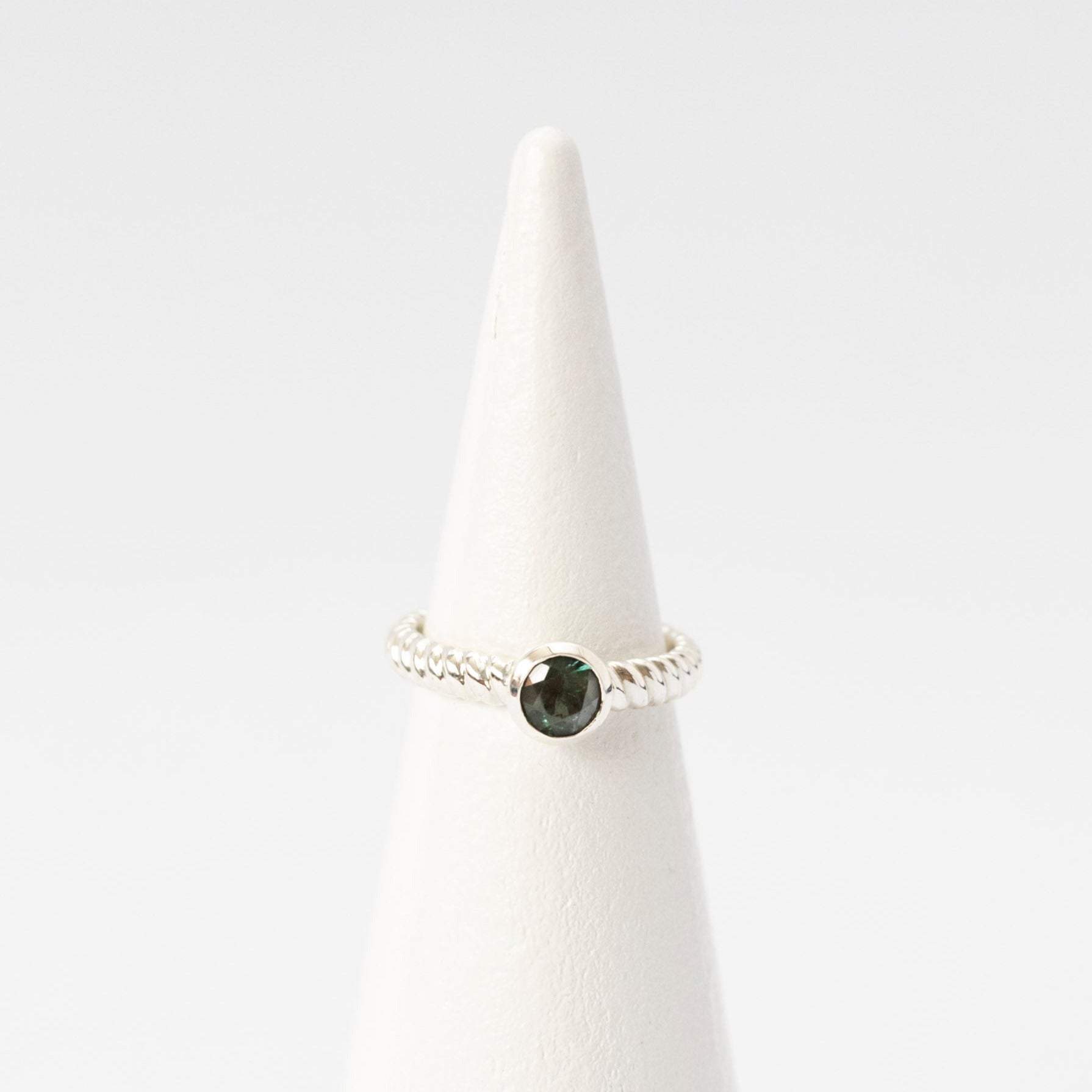 Anillo fabricado con método de casting en plata 950, por lo que es libre de soldaduras. Engastado a mano.