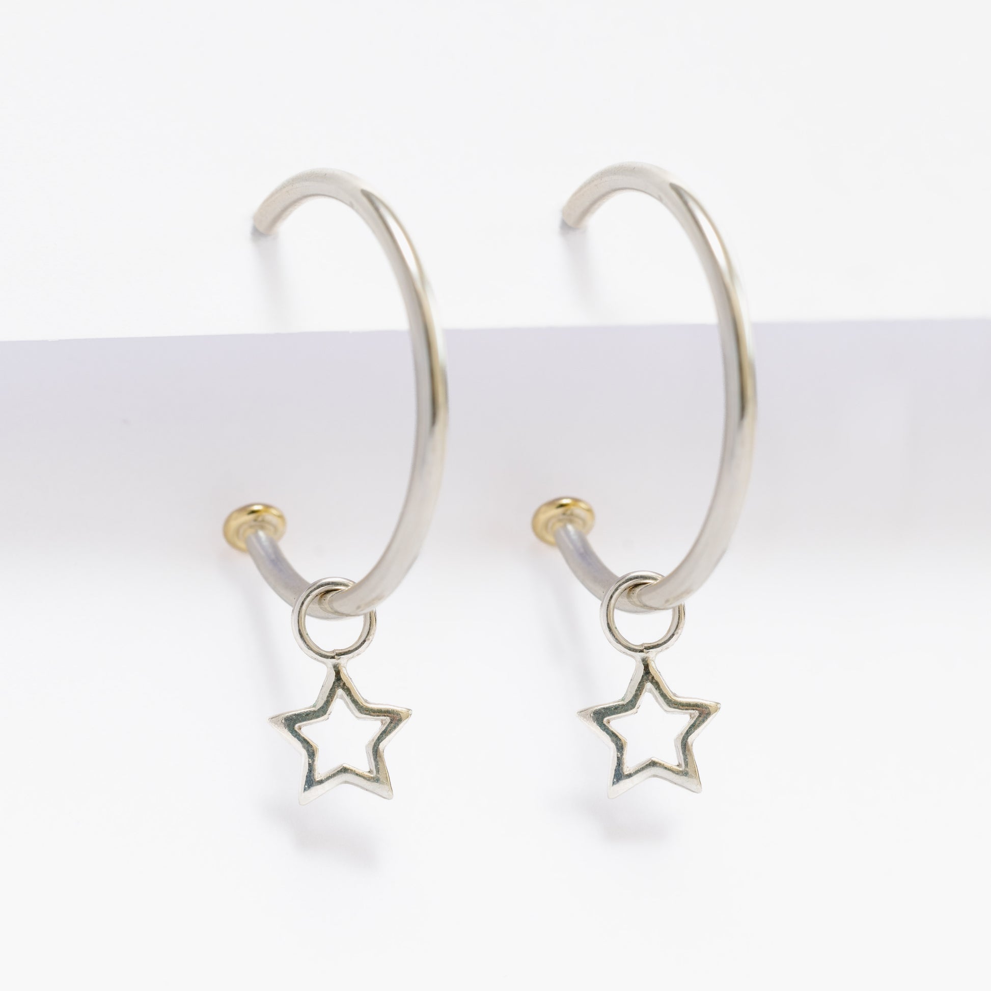 Charm estrella para aros en plata 925. Set de 2 unidades.