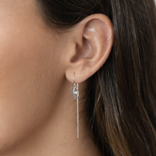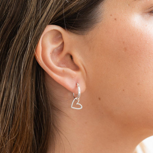 Aros Asimétricos Ojo + Bisel con Circón Corazón plata