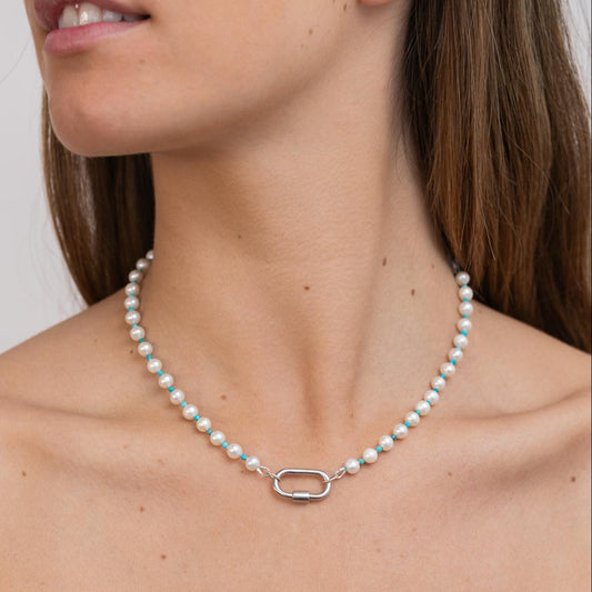 Collar de Perlas y Turquesas + Broche Lock plata