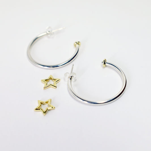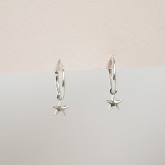 Mini Argollas con Charm Estrella plata