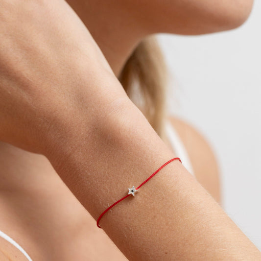 Pulsera Hilo Rojo Mini Estrella plata con Diamante