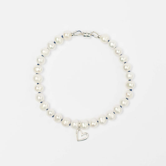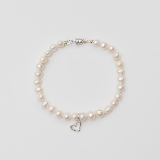 Pulsera Perlas + corazón plata HB